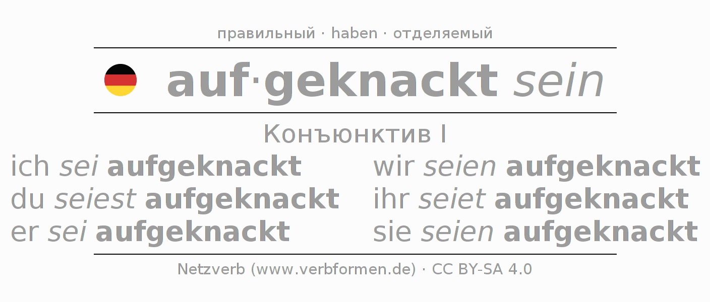 - ich sei aufgeknackt (1-е лицоЕдинственное число)
