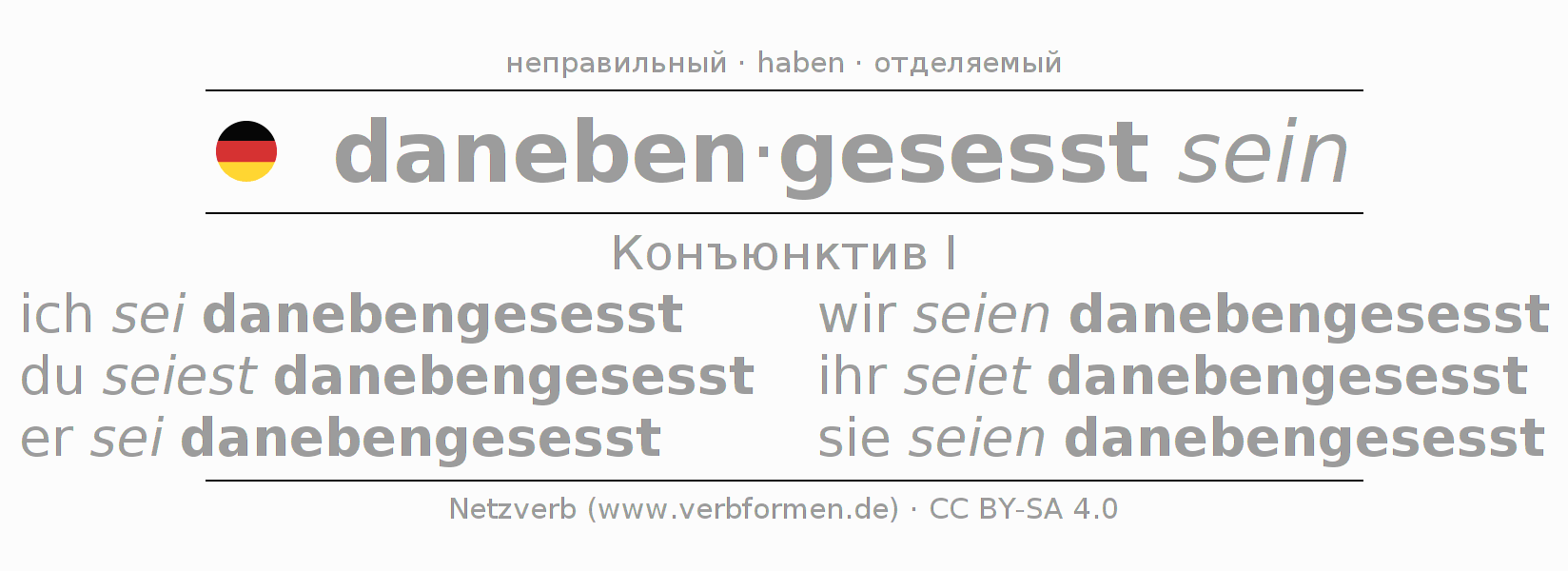 Этот глагол danebensitzen полностью спрягается во всех лицах и числах Koнъюнктив Презенс.