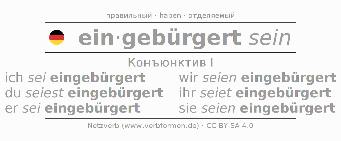 Этот глагол einbürgern полностью спрягается во всех лицах и числах Koнъюнктив Презенс.