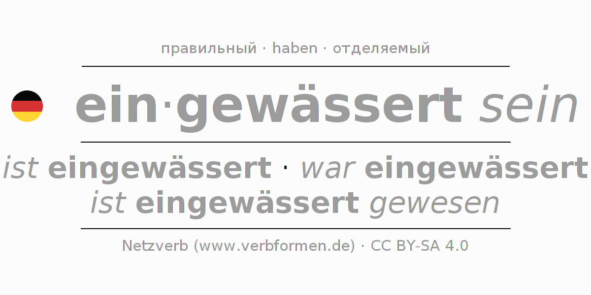 - ich sei eingewässert (1-е лицоЕдинственное число)