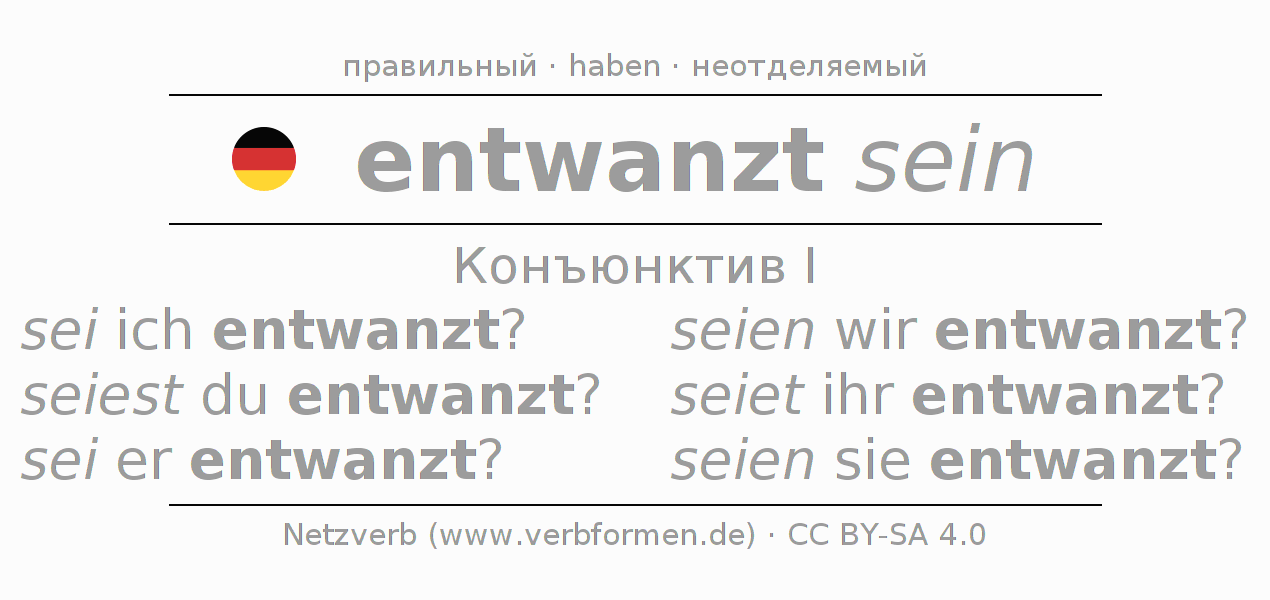 Этот глагол entwanzen полностью спрягается во всех лицах и числах Koнъюнктив Презенс.