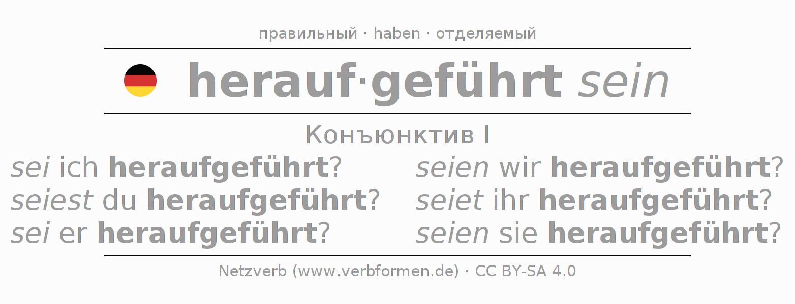 Этот глагол heraufführen полностью спрягается во всех лицах и числах Koнъюнктив Презенс.