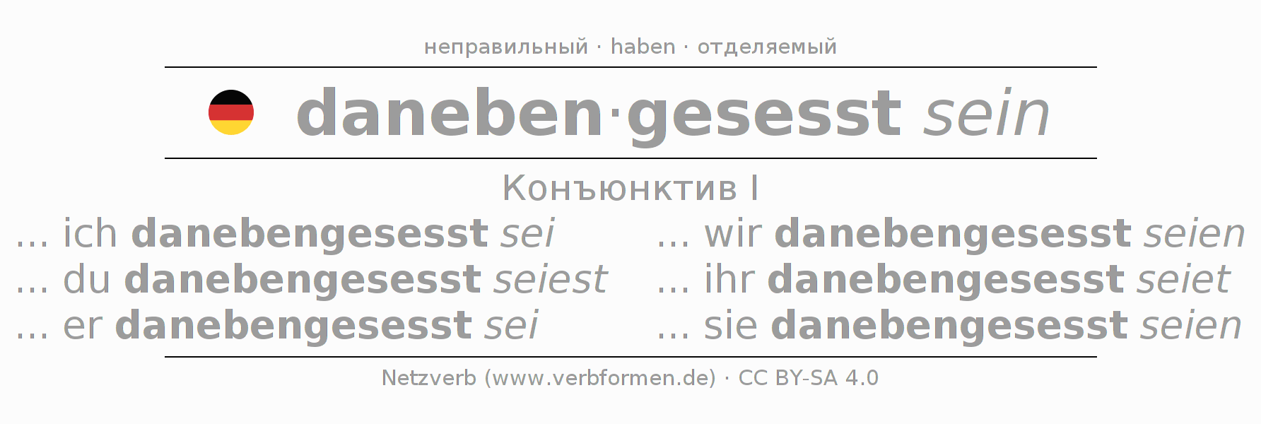 - Как спрягается danebensitzen в Конъюнктив I?