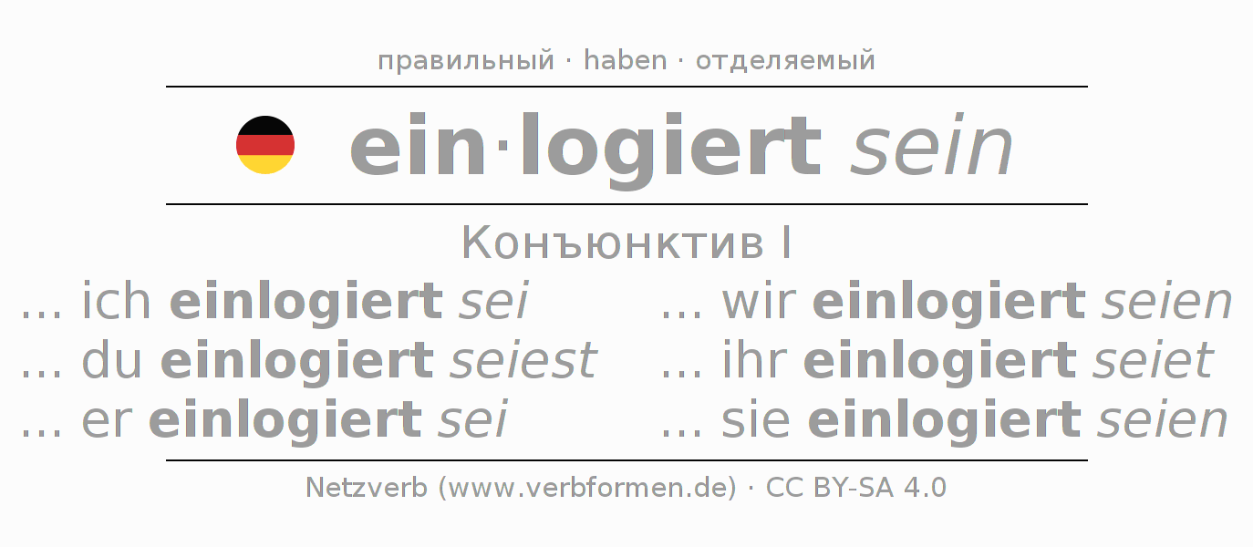 Этот глагол einlogieren полностью спрягается во всех лицах и числах Koнъюнктив Презенс.