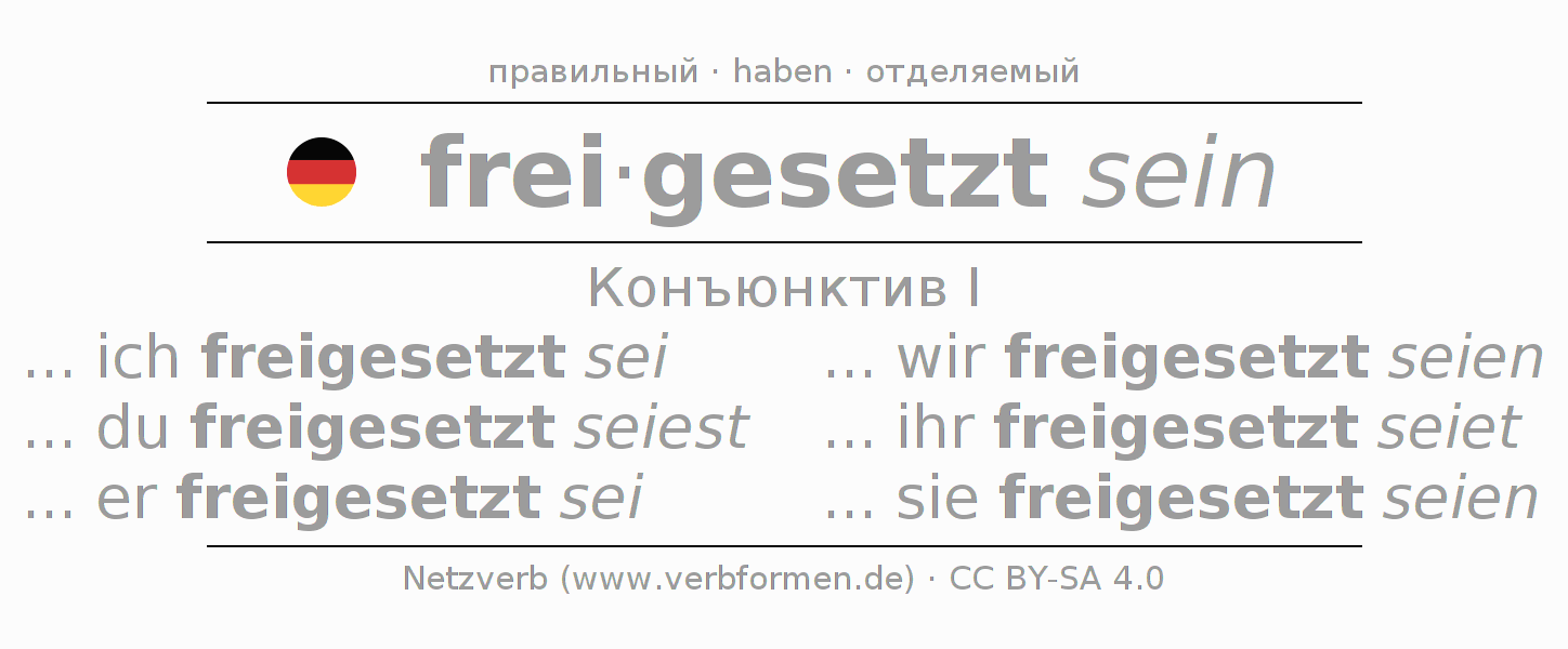 Этот глагол freisetzen полностью спрягается во всех лицах и числах Koнъюнктив Презенс.