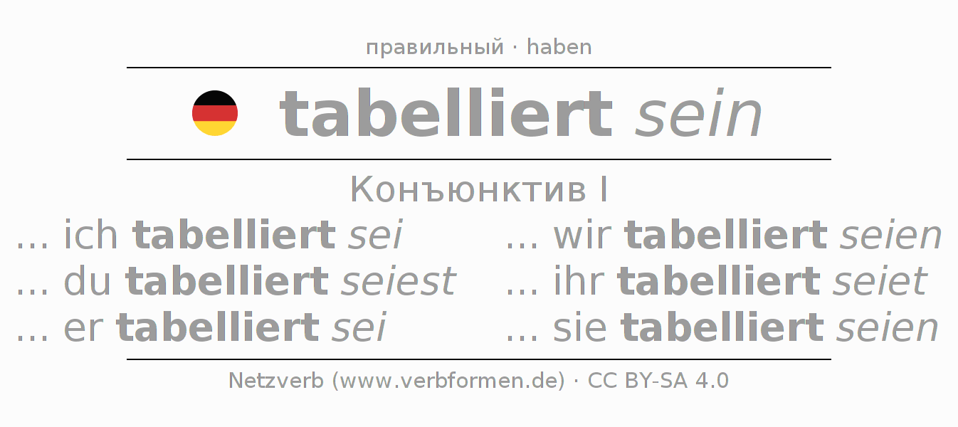 Этот глагол tabellieren полностью спрягается во всех лицах и числах Koнъюнктив Презенс.