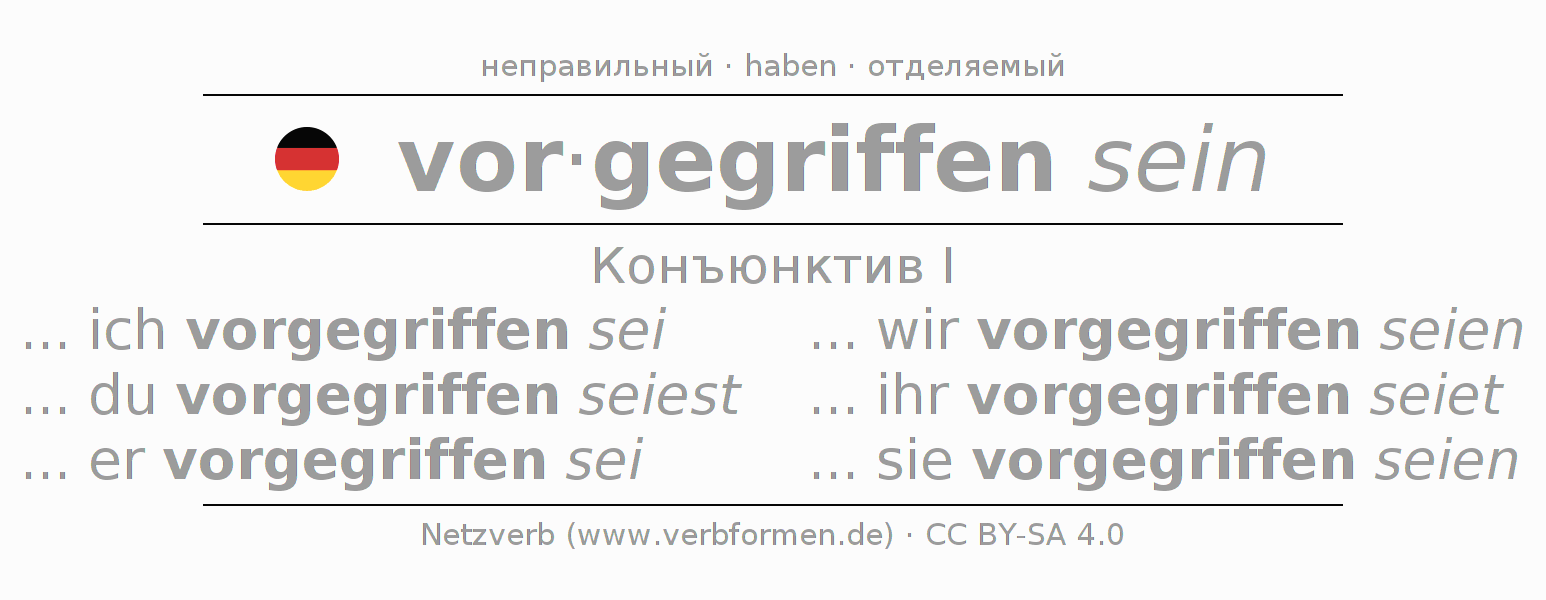 Этот глагол vorgreifen полностью спрягается во всех лицах и числах Koнъюнктив Презенс.