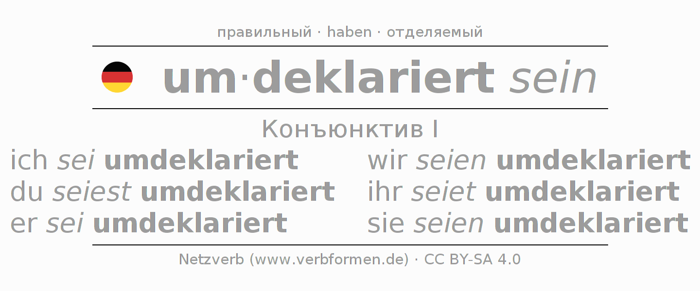 Этот глагол umdeklarieren полностью спрягается во всех лицах и числах Koнъюнктив Презенс.