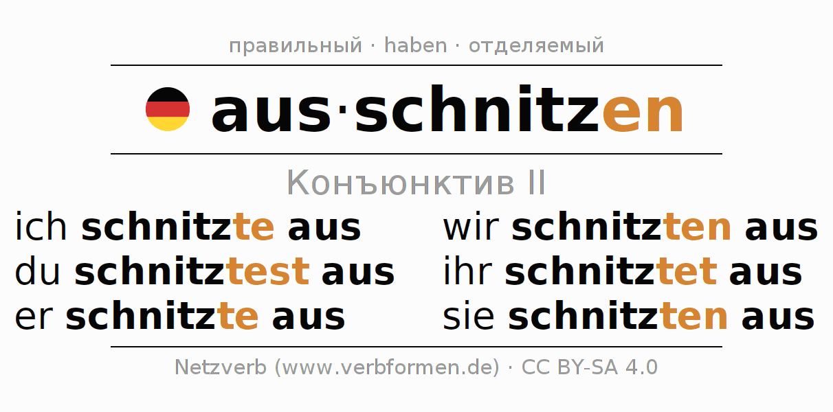 - Как спрягается ausschnitzen в Конъюнктив II?
