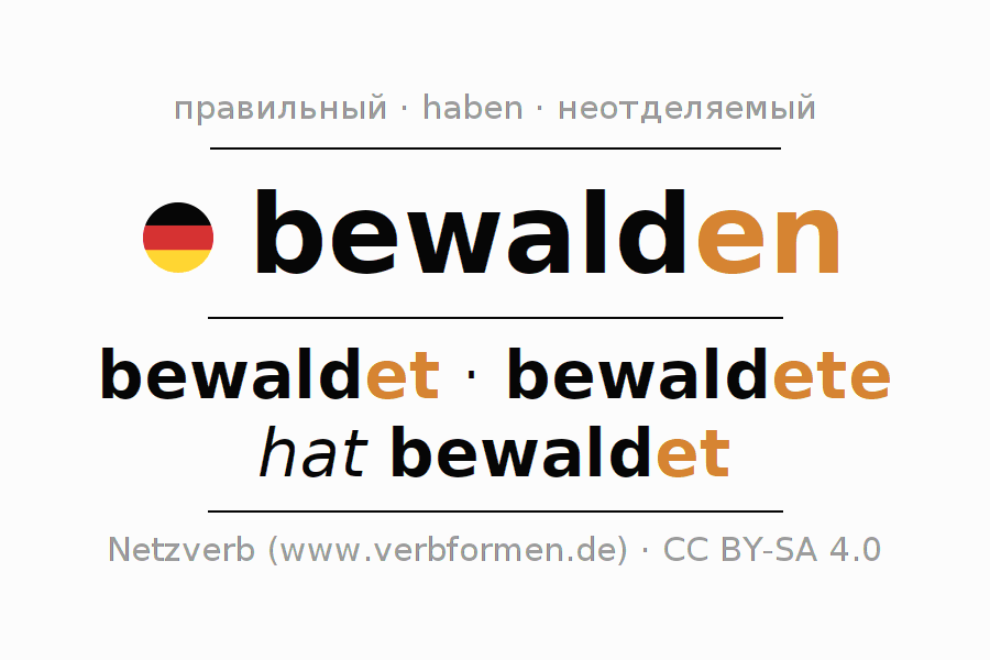 Спряжение bewalden (засаживать лесом, облесение) в сослагательном наклонении II: ich bewaldete, du bewaldetest, er bewaldete, wir bewaldeten, ihr bewaldetet, sie bewaldeten