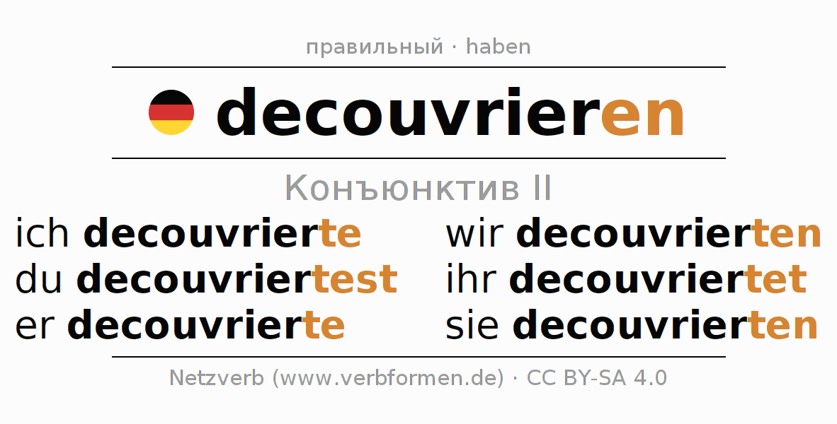 - Как спрягается decouvrieren в Конъюнктив II?