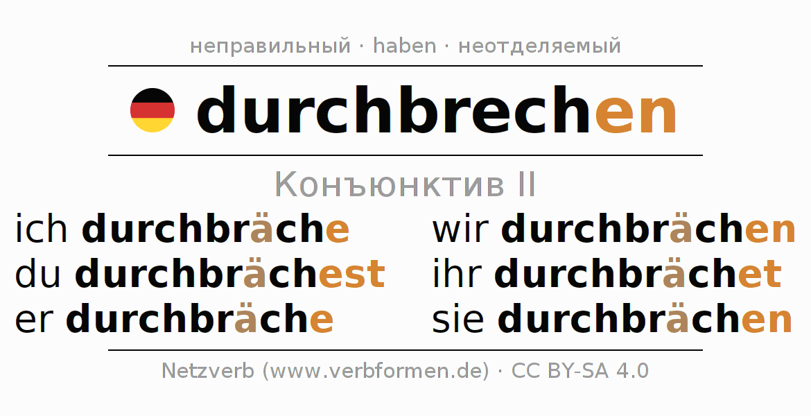 - Как спрягается durchbrechen в Конъюнктив II?