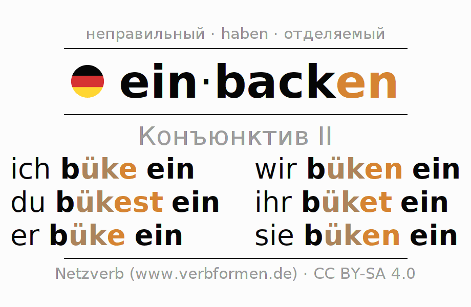 - Образование Конъюнктив II einbacken
