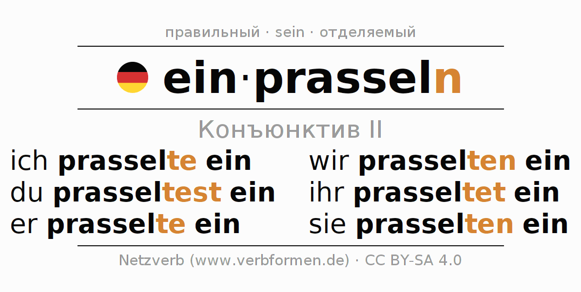 Этот глагол einprasseln полностью спрягается во всех лицах и числах Koнъюнктив Претеритум.