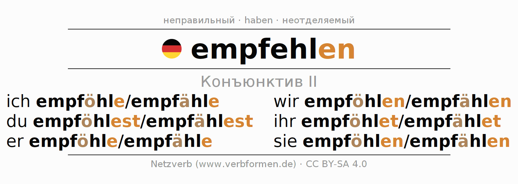 - ich empföhle/empfähle (1-е лицоЕдинственное число)