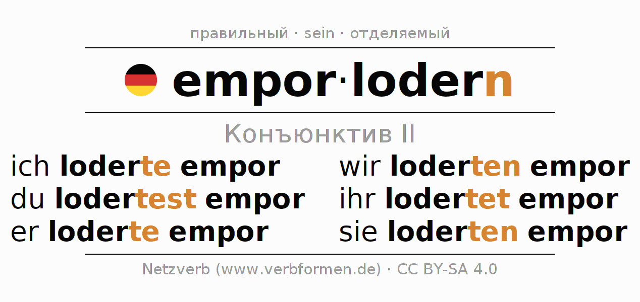 Этот глагол emporlodern полностью спрягается во всех лицах и числах Koнъюнктив Претеритум.