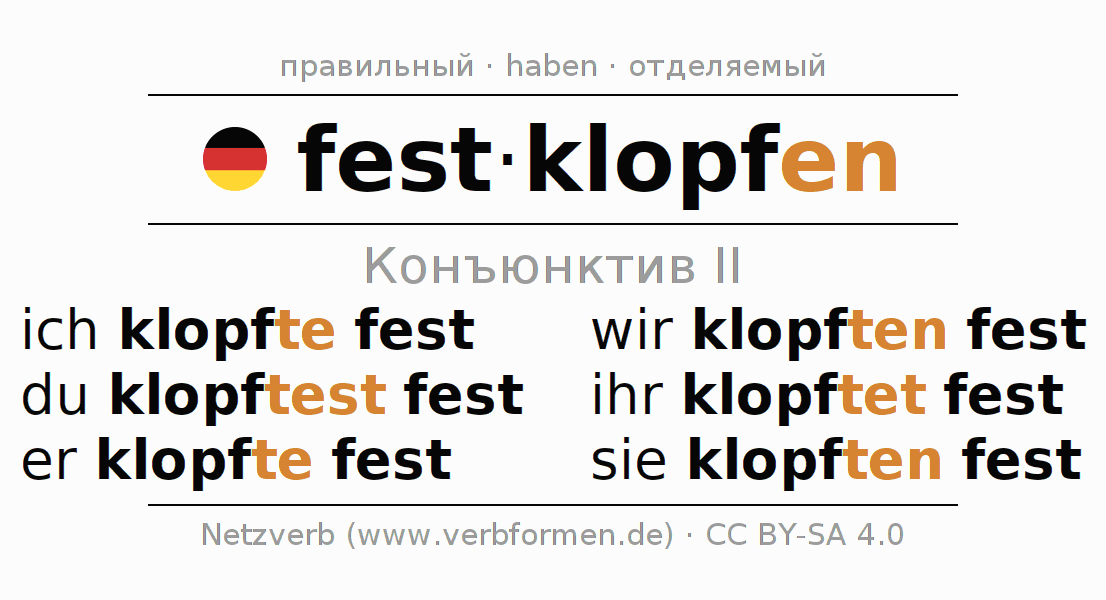 - Как спрягается festklopfen в Конъюнктив II?