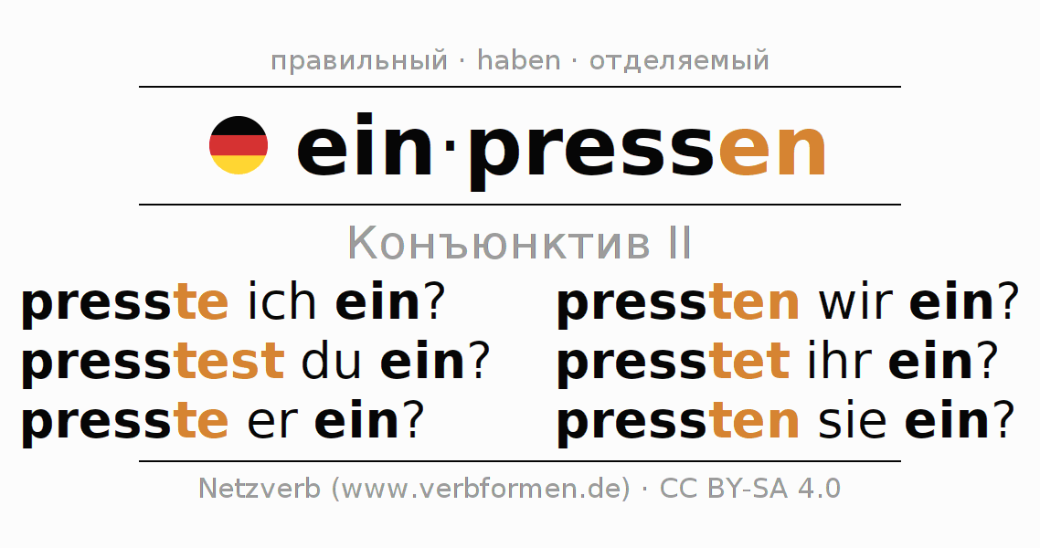 - Как спрягается einpressen в Конъюнктив II?