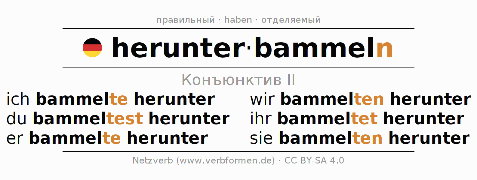 - Как спрягается herunterbammeln в Конъюнктив II?