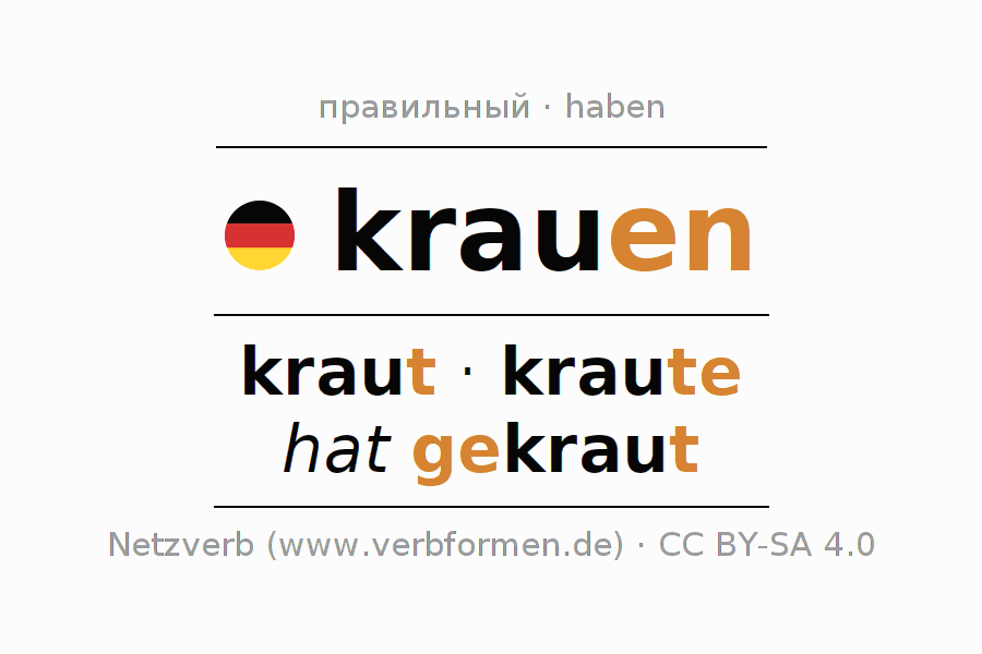 Спряжение krauen (ласкать, поглаживать) в сослагательном наклонении II: ich kraute, du krautest, er kraute, wir krauten, ihr krautet, sie krauten