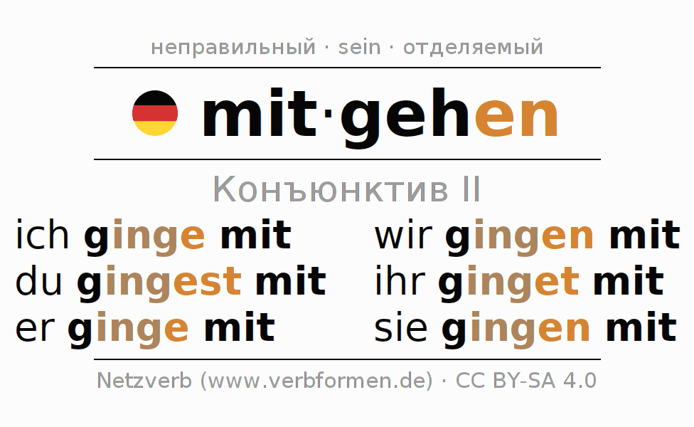 - Как спрягается mitgehen в Конъюнктив II?
