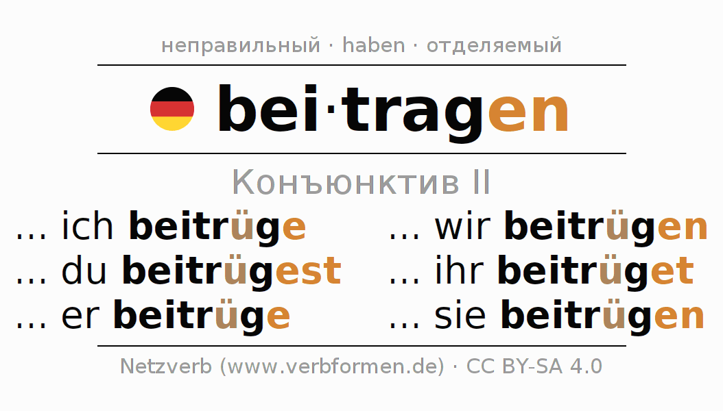 - ... ich beitrüge (1-е лицоЕдинственное число)