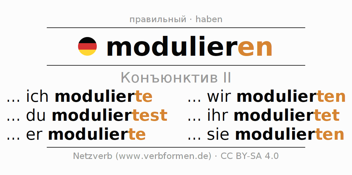 Этот глагол modulieren полностью спрягается во всех лицах и числах Koнъюнктив Претеритум.