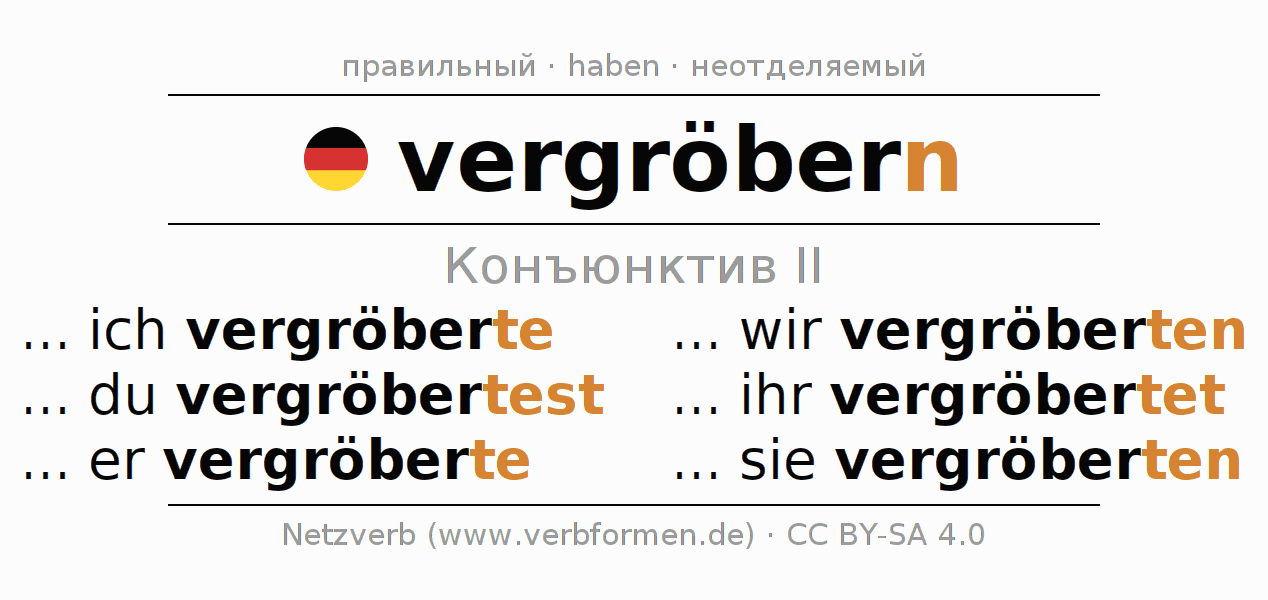 Этот глагол vergröbern полностью спрягается во всех лицах и числах Koнъюнктив Претеритум.