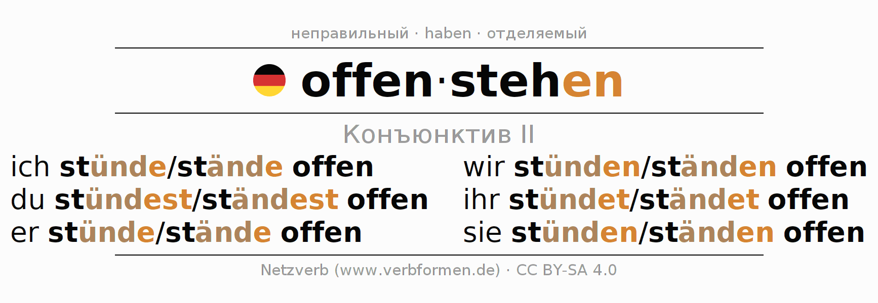 - sie stünden/ständen offen (3-е лицоМножественное число)