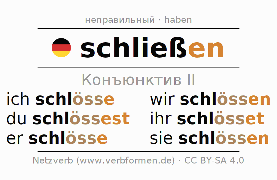 - Как спрягается schließen в Конъюнктив II?