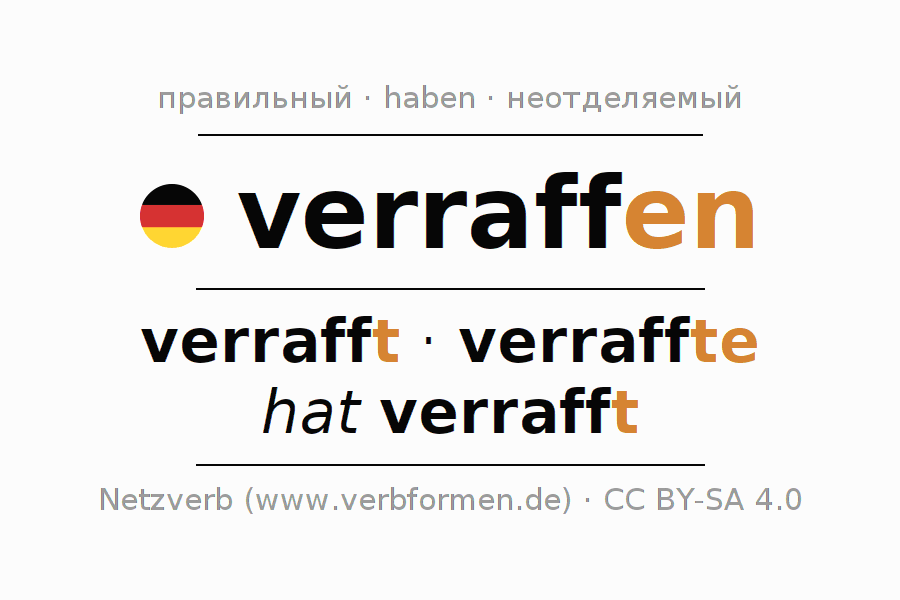 Спряжение verraffen (не замечать, не понимать) в сослагательном наклонении II: ich verraffte, du verrafftest, er verraffte, wir verrafften, ihr verrafftet, sie verrafften