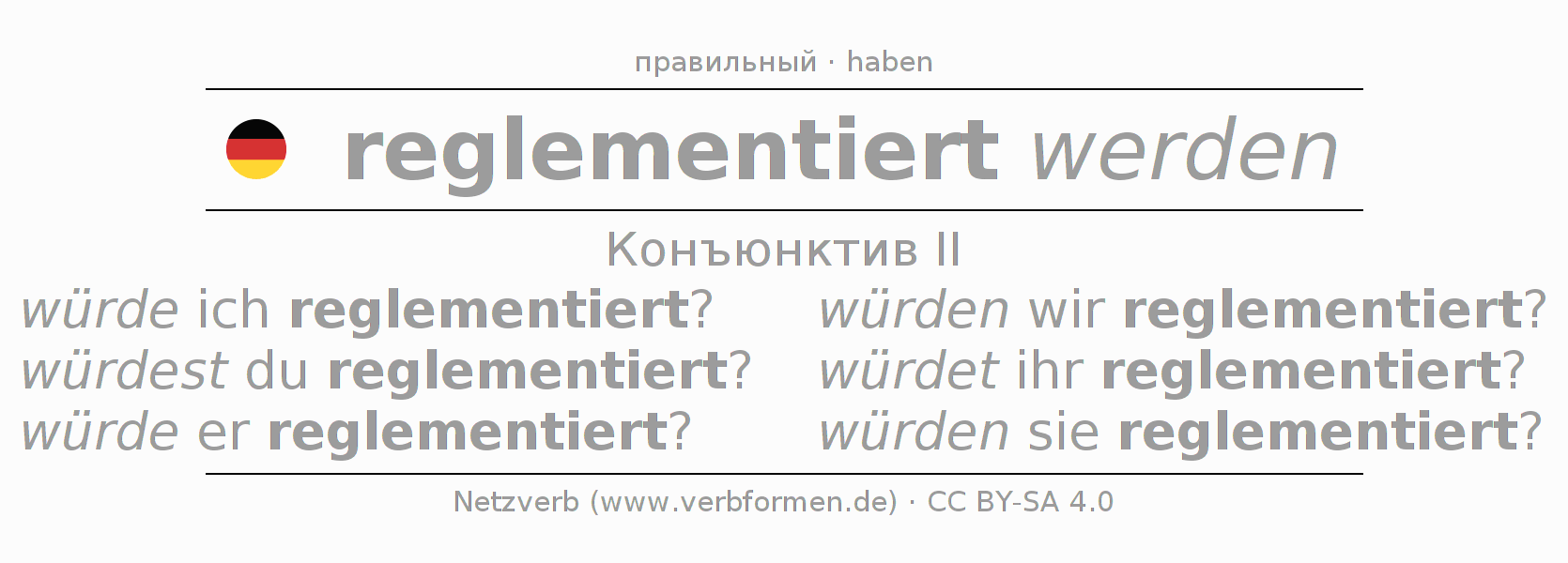 Этот глагол reglementieren полностью спрягается во всех лицах и числах Koнъюнктив Претеритум.