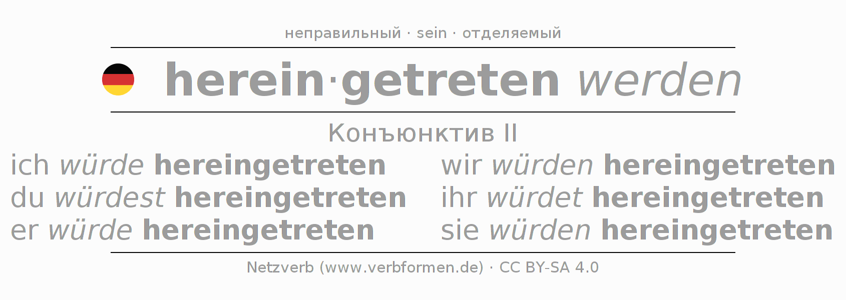 Глагольные формы в Конъюнктив II hereintreten