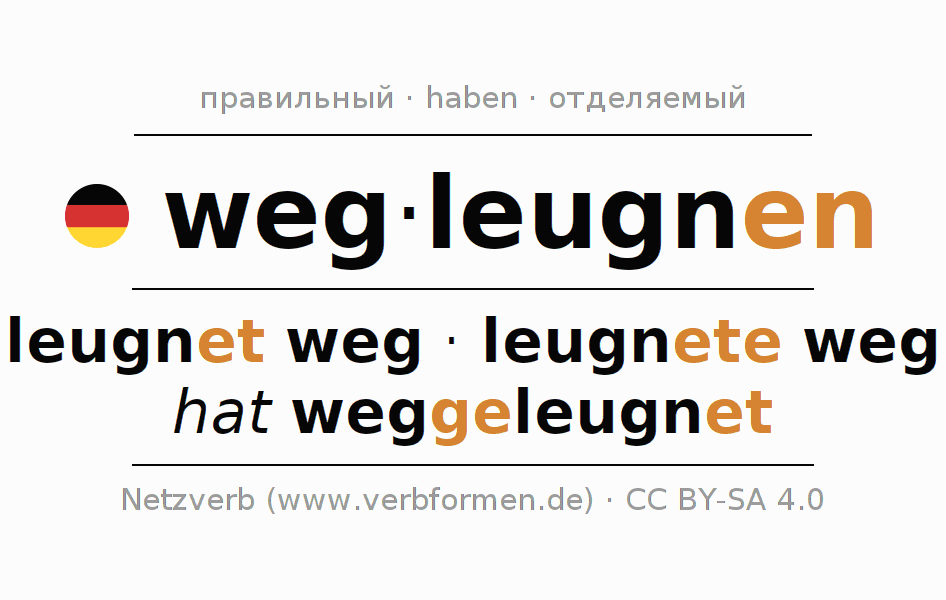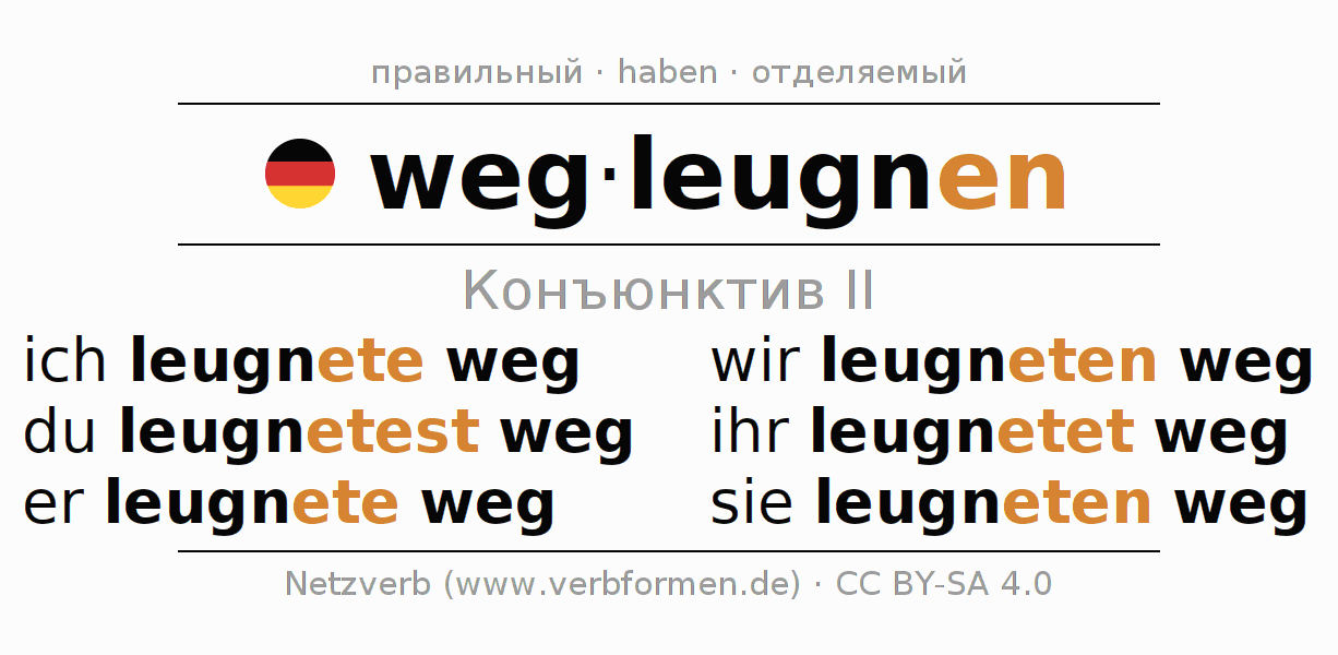 - ich leugnete weg (1-е лицоЕдинственное число)