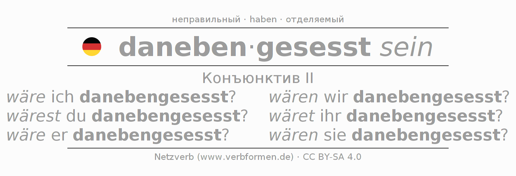 Этот глагол danebensitzen полностью спрягается во всех лицах и числах Koнъюнктив Претеритум.