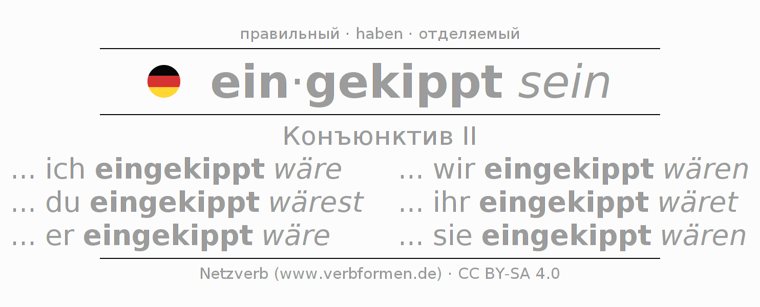 - Как спрягается einkippen в Конъюнктив II?