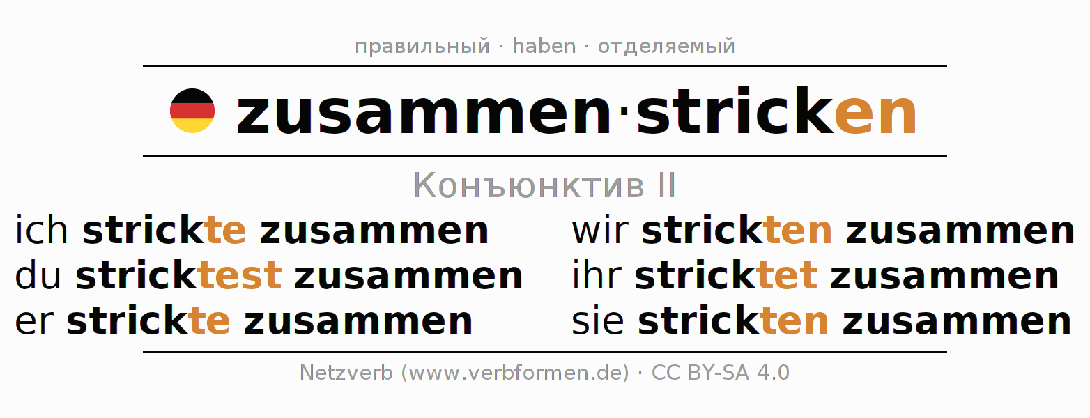 - Как спрягается zusammenstricken в Конъюнктив II?