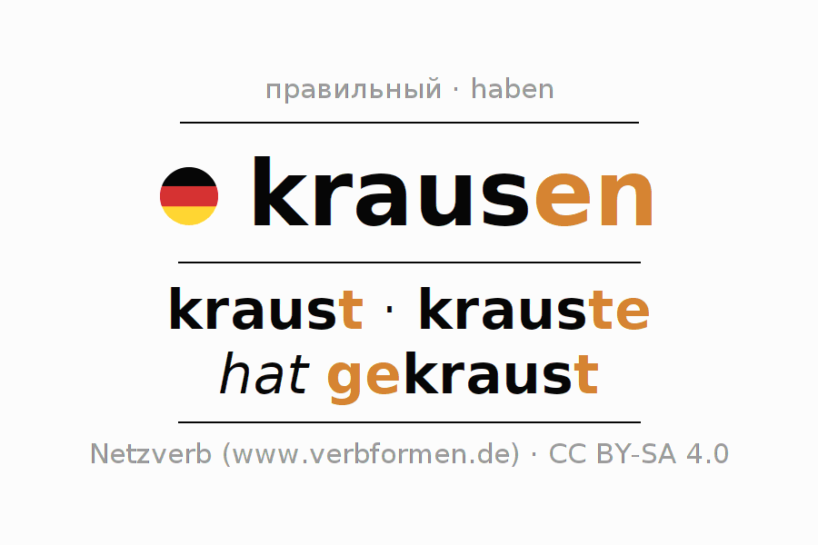 - Презенс: kraus(e) (du), krausen wir, kraust (ihr), krausen Sie