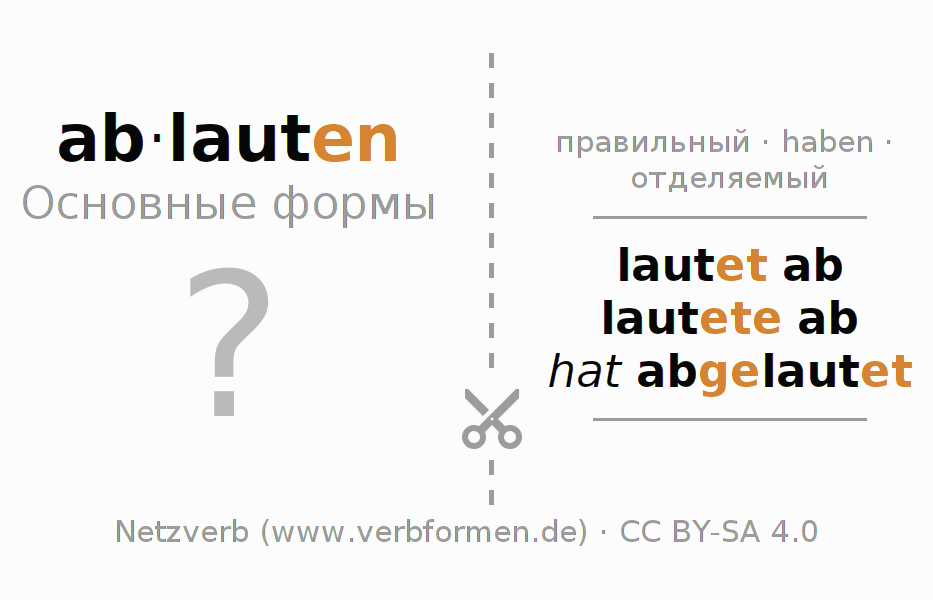 Глагольные таблицы, содержащие все формы глагола ablauten, для наглядности объединены в одну общую таблицу.
