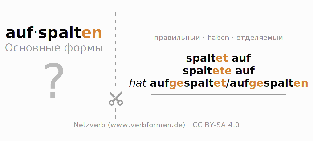 Головоломки по всем формам глагола aufspalten