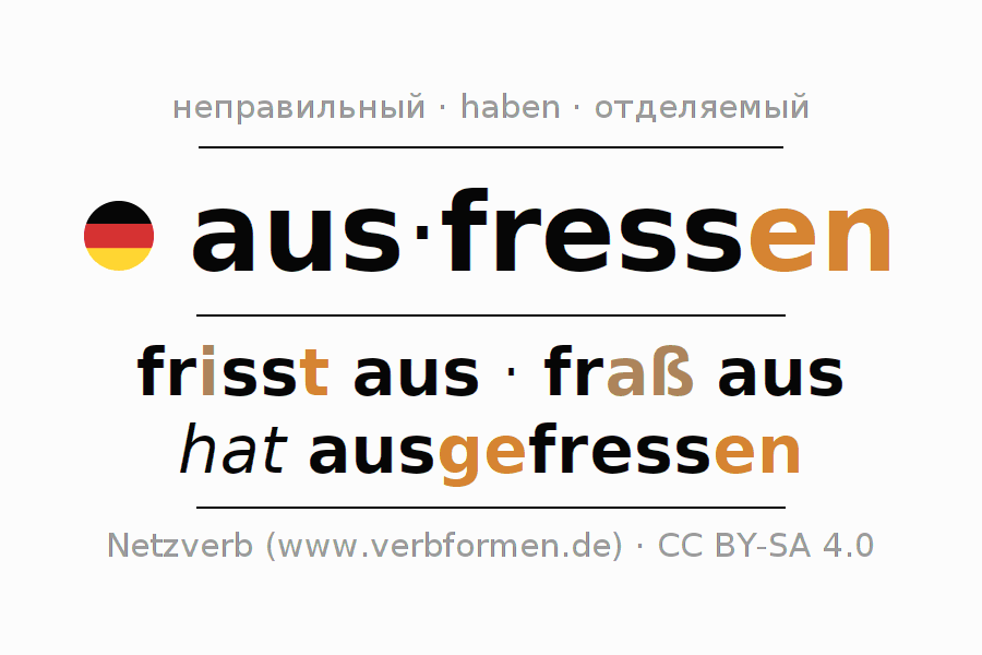 Глагольные таблицы, содержащие все формы глагола ausfressen, для наглядности объединены в одну общую таблицу.