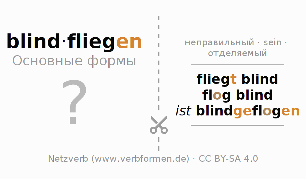 Головоломки по всем формам глагола blindfliegen