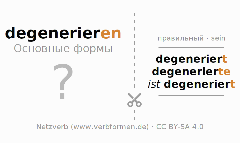 Глагольные таблицы, содержащие все формы глагола degenerieren, для наглядности объединены в одну общую таблицу.