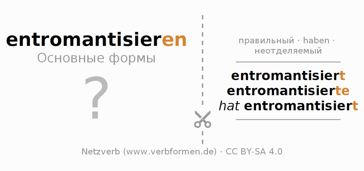 Глагольные таблицы, содержащие все формы глагола entromantisieren, для наглядности объединены в одну общую таблицу.