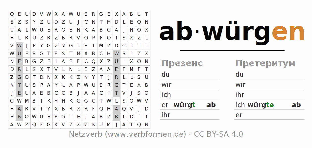 Головоломки по всем формам глагола abwürgen