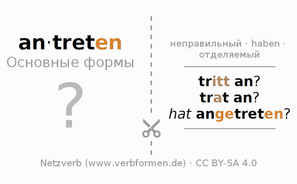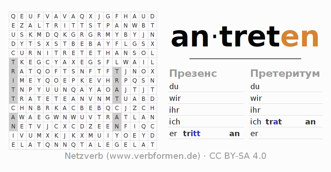 Головоломки по всем формам глагола antreten (hat)