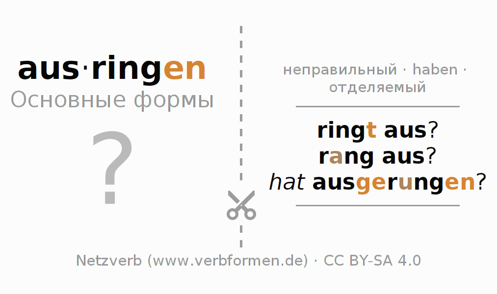 Таблицы спряжения всех форм глагола ausringen
