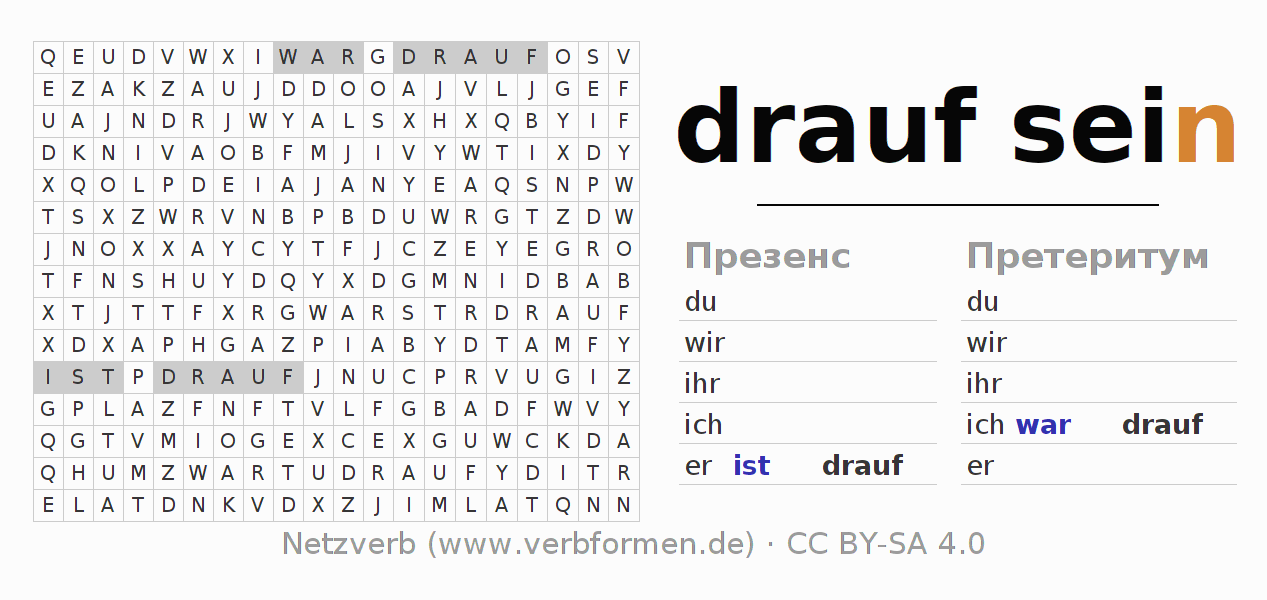Головоломки по всем формам глагола draufsein