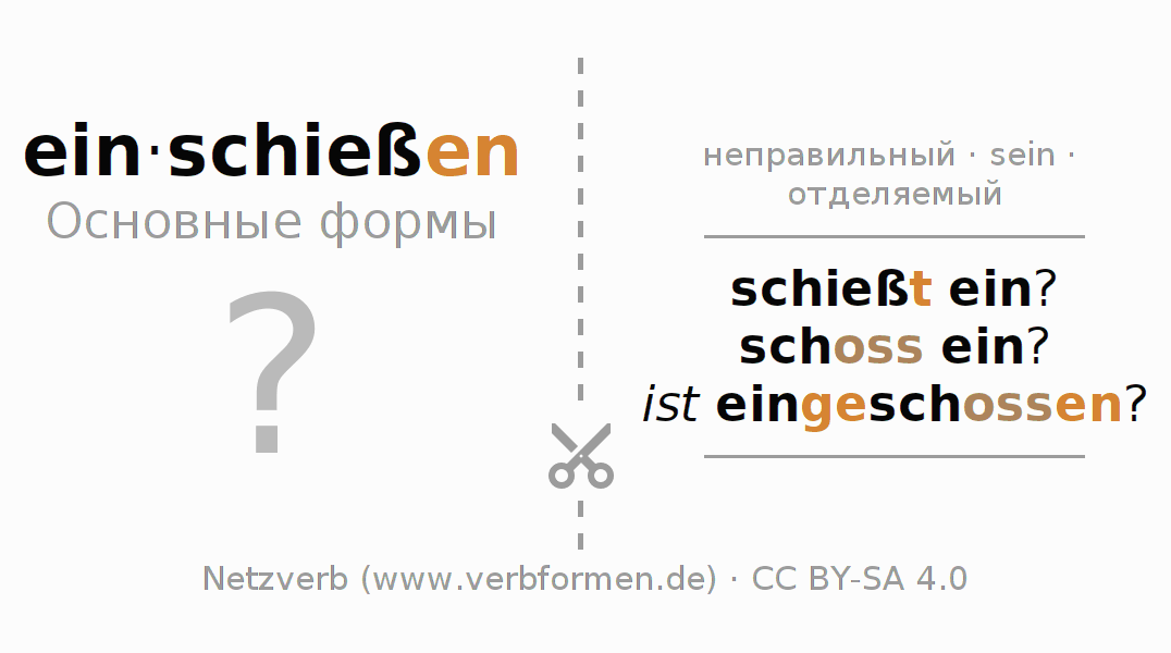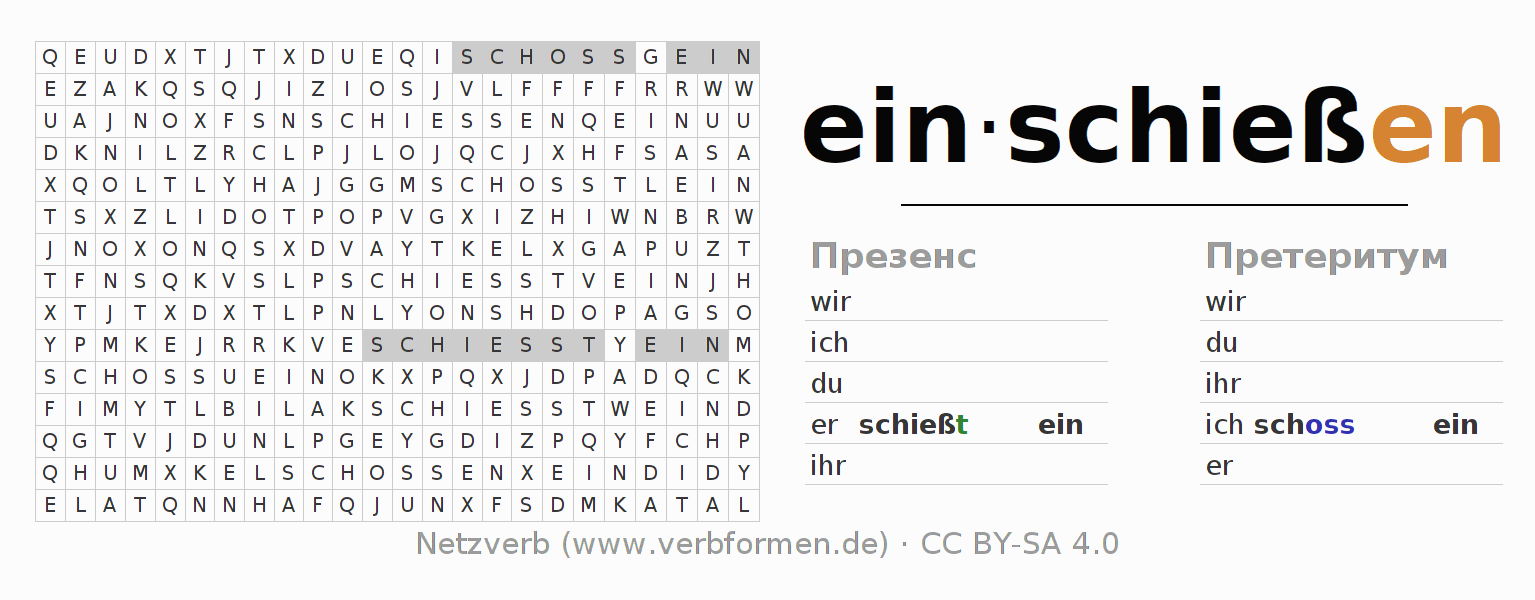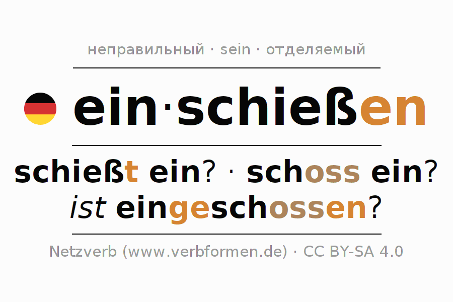 Головоломки по всем формам глагола einschießen (ist)