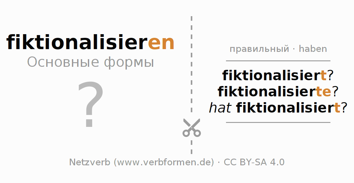 С помощью обучающих карточек можно эффективно и удобно изучать и запоминать глагольные формы fiktionalisieren. Обучающие карточки можно распечатать в формате PDF и вырезать.